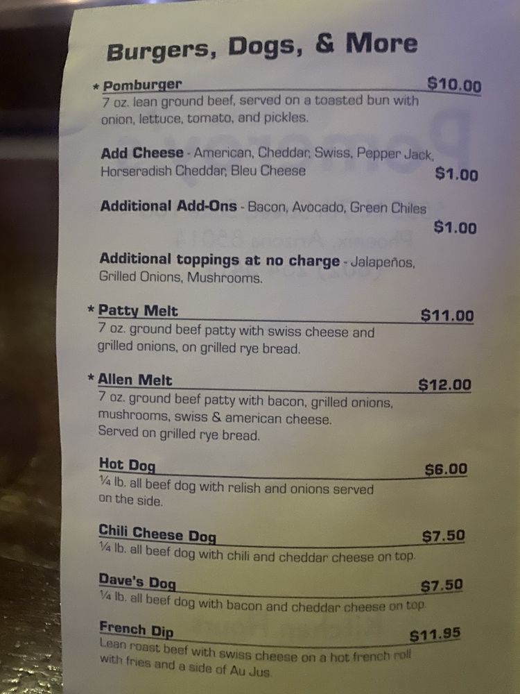 Introducing the menu at Pomeroy's, located in Phoenix, AZ, where comfort food reigns supreme. Specializing in burgers and sandwiches, Pomeroy's offers a diverse selection that caters to various tastes.
